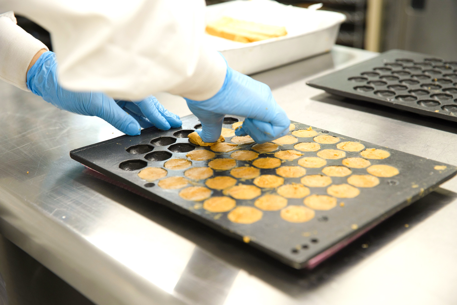 一番人気の商品は「ベーゴマクッキー」。 地元・川口鋳物職人の手で作られたベーゴマ型の焼き型で、県産小麦粉と米粉をブレンドした特製の生地を丁寧に焼き上げました。